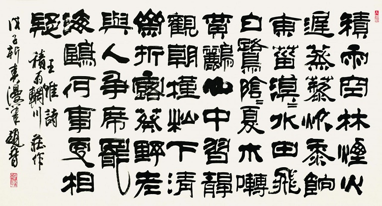 作品简介《积雨辋川庄作》是唐代诗人王维的作品,被选入清代蘅塘退士编的《唐诗三百首》。此诗以鲜丽生新的色彩,描绘出夏日久雨初停后关中平原上美丽繁忙的景象,前四句写诗人静观所见,后四句写诗人的隐居生活。诗人把自己幽雅清淡的禅寂生活与辋川恬静优美的田园风光结合起来描写,创造了一个物我相惬、情景交融的意境。全诗写景生动真切,生活气息浓厚,如同一幅淡雅的水墨画,清新明净,形象鲜明,表现了诗人隐居山林、脱离尘俗的闲情逸致。