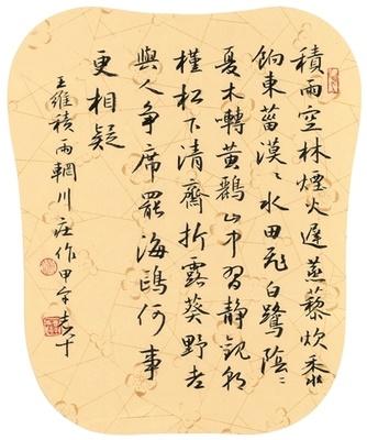 如果说,首联所写农家无忧无虑的劳动生活已引起诗人的浓厚兴趣和欣羡之情,那么,面对这黄鹂、白鹭的自由自在的飞鸣,诗人自会更加陶醉不已。而且这两联中,人物活动也好,自然景色也好,并不是客观事物的简单摹拟,而是经过诗人心灵的感应和过滤,染上了鲜明的主观色彩,体现了诗人的个性。对于“晚年惟好静,万事不关心”的王维来说,置身于这世外桃源般的辋川山庄,真可谓得其所哉了,这不能不使他感到无穷的乐趣。下面两联就是抒写诗人隐居山林的禅寂生活之乐的。