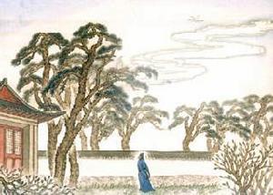 古庙的松杉树上水鹤筑巢栖息;每年三伏腊月跑来祭祀的村翁。