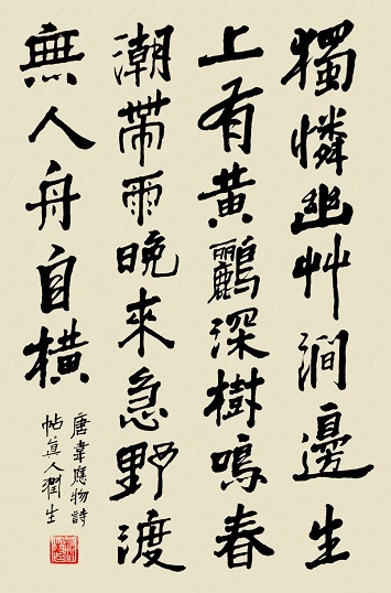 独怜幽草涧边生, 上有黄鹂深树鸣。