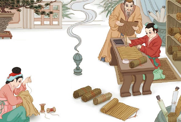 孟子小时候家离墓地很近,就常常玩办理丧事的游戏,他母亲说:“这不是我可以用来安顿儿子的地方。”于是搬迁到集市旁边,孟子又做学商人卖东西的游戏。他母亲说:“这也不是我可以用来安顿儿子的地方。”又搬家到学堂旁边。于是,孟子就又做些拱让食物的礼仪的游戏,他母亲说:“这里可以用来安顿我的儿子。”他们就在那里住了下来。