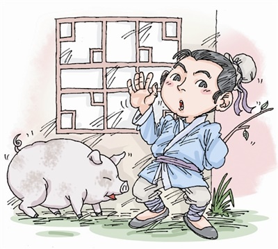 承宫少孤,年八岁,为人牧猪。乡里徐子盛明《春秋》经,授诸生数百人。宫过其庐下,见诸生讲诵,好之,因忘其猪而听经。猪主怪其不还,行求索。见而欲笞之。门下生共禁,乃止,因留宫门下。樵薪执苦,数十年间,遂通其经。(选自《后汉书·承宫传》)