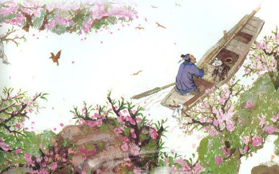 晋太元中,武陵人捕鱼为业。缘溪行(xíng),忘路之远近。忽逢桃花林,夹岸数百步,中无杂树,芳草鲜美,落英缤纷。渔人甚异之。复前行,欲穷其林。