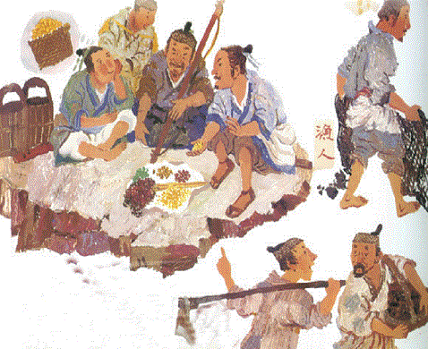 见渔人,乃大惊,问所从来,具答之。便要(yāo)还家,为设酒杀鸡作食。村中闻有此人,咸来问讯。自云先世避秦时乱,率妻子邑人来此绝境,不复出焉,遂与外人间(jiàn)隔。问今是何世,乃不知有汉,无论魏晋。此人一一为具言所闻,皆叹惋。余人各复延至其家,皆出酒食。停数日,辞去。此中人语(yù)云:“不足为外人道也。”
