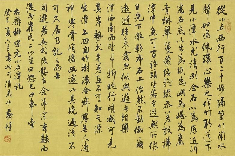 坐潭上,四面竹树环合,寂寥无人,凄神寒骨,悄怆幽邃。以其境过清,不可久居,乃记之而去。