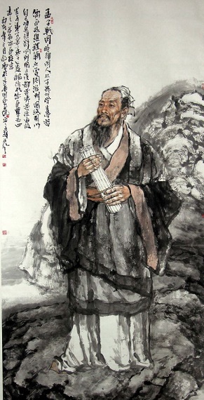 孟子(前372一前289),名轲,战国中期邹国(今山东邹城)人,继孔子之后儒家最重要的思想家。孟子曾周游列国,推行他的“仁政”思想和“王道”主张,但由于当时诸侯国忙于战争兼并,其观点被认为是“迂阔”,几乎无人采纳。孟子晚年回邹国与弟子著书立说,作《孟子》7篇,共269章。《孟子》语言明白晓畅,又极富感情,具有磅礴的气势和强大的鼓动力量。