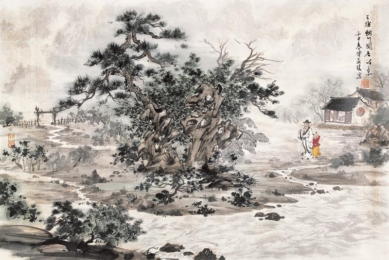 王维于开元二十年前后曾在辋川隐居,他对田园风光、自然山水怀有特殊的情感,写了许多歌赞美那里的生活和景物,在隐居生活中他经常和野老共话桑麻,同朋友饮酒赋诗,与山僧谈经论道,在这些人中,裴迪是他最好的伴侣,早在移居辋川之前,他们就一同在终南山隐居过,得宋之问蓝田别墅后,他们又经常“浮舟往来生,弹琴赋诗,啸咏终日” 。