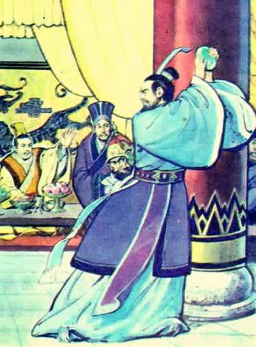 秦王坐在章台上接见蔺相如,相如捧璧呈献给秦王。秦王非常高兴,把宝璧传着给妻妾和左右侍从看,左右都高呼万岁。相如看出秦王没有用城邑抵偿赵国的意思,便走上前去说:“璧上有个小斑点,让我指给大王看。”秦王把璧交给他,相如于是手持璧玉退后几步靠在柱子上,怒发冲冠,对秦王说:“大王想得到宝璧,派人送信给赵王,赵王召集全体大臣商议,大家都说:‘秦国贪得无厌,倚仗它的强大,想用空话得到宝璧,说给我们城邑恐怕不可能。’商议的结果是不想把宝璧给秦国。但是我认为平民百姓之间的交往尚且互相不欺骗,更何况是大国之间呢!况且为了一块璧玉的缘故就使强大的秦国不高兴,也是不应该的。于是赵王斋戒了五天,派我捧着宝璧,在殿堂上恭敬地拜送国书。为什么要这样呢?是尊重大国的威望以表示敬意呀。如今我来到贵国,大王却在一般的台观上接见我,礼节十分傲慢;得到宝璧后,传给姬妾们观看,这样来戏弄我。我观察大王没有给赵王十五城的诚意,所以我又取回宝璧。大王如果一定要逼我,我的头今天就同宝璧一起在柱子上撞碎!”相如手持宝璧,斜视庭柱,就要向庭柱上撞去。秦王怕他把宝璧撞碎,便向他道歉,坚决请求他不要如此,并召来有司查看地图,指明从某地到某地的十五座城邑都给赵国。相如估计秦王只不过用欺诈手段假装给赵国城邑,实际上赵国根本不可能得到,于是就对秦王说:“和氏璧是天下公认的宝物,赵王惧怕贵国,不敢不奉献出来。赵王送璧之前,斋戒了五天,如今大王也应斋戒五天,在殿堂上安排九宾大典,我才敢献上宝璧。”秦王估量,毕竟不可能强力夺取,于是就答应斋戒五天,把相如安置在广成宾馆。相如估计秦王虽然答应斋戒,也必定背约不给城邑,便派他的随从穿上粗麻布衣服,怀中藏好宝璧,从小路逃出,把宝璧送回赵国。