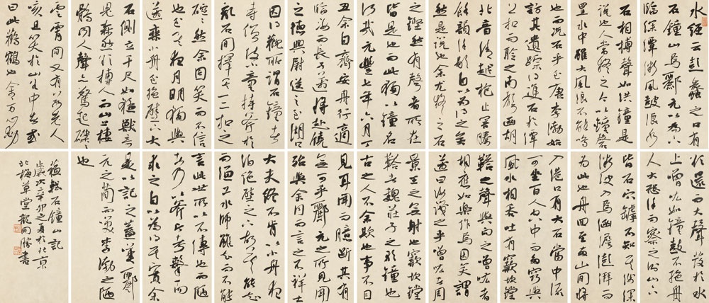 行文曲折。行文富于曲折变化,是此文的一个突出特色。例如引述郦道元和李渤的说法,本来是枯燥的内容,作者加上两个辨驳,即顿见精彩。文中写对旧说之疑共有三次,不仅每次写法不同,即便在同一次中,文笔也有曲折。对郦道元,是以人之疑引出己之疑,而己之疑又是以比喻来表达;李渤本来是在纠正郦道元的说法,作者引述时,特别加一句“自以为得之矣”,紧接着陡然一转——“然是说也,余尤疑之”,着一“‘尤”字,说它较郦道元的说法更不可信;对寺僧使小童持斧敲击所谓“石钟”,仅以“余固笑而不信也”一句表示不屑一驳,矛头直指到三百年前得双石“扣而聆之”的李渤,驳李渤全用议论,一针见血,也不同于对郦道元的说法用比喻。而且,此节插在游山之前,也使文章平添波澜。总之,此文所记之事、所讨论的问题虽平常,但通篇几句一折,有些地方一句一转,极起伏变化之致,使议论内容富有可读性。