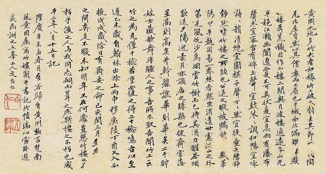 作品简介《黄冈竹楼记》是北宋文学家王禹偁的一篇散文,写于作者被贬黄州期间。作者借谪居之乐,抒写屡遭贬谪的不满之情。这种宦途失意、寄情山水的情怀,在封建时代具有一定的代表性。《黄冈竹楼记》以竹楼为核心,先记叙黄冈多竹,可以用来代替陶瓦,且价廉工省。继而描写在竹楼上可观山水、听急雨、赏密雪、鼓琴、咏诗、下棋、投壶,极尽人间之享乐;亦可手执书卷,焚香默坐,赏景、饮酒、品茶、送日、迎月,尽得谪居的胜概。藉齐云、落星、井干、丽谯各名楼反衬竹楼的诗韵,表明作者甘居清苦、鄙夷声色的高尚情怀。继而写奔走不暇,眷恋竹楼之意。
