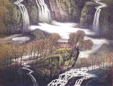 13、合流屈曲而南:泉水汇合后弯弯曲曲地向南流去。